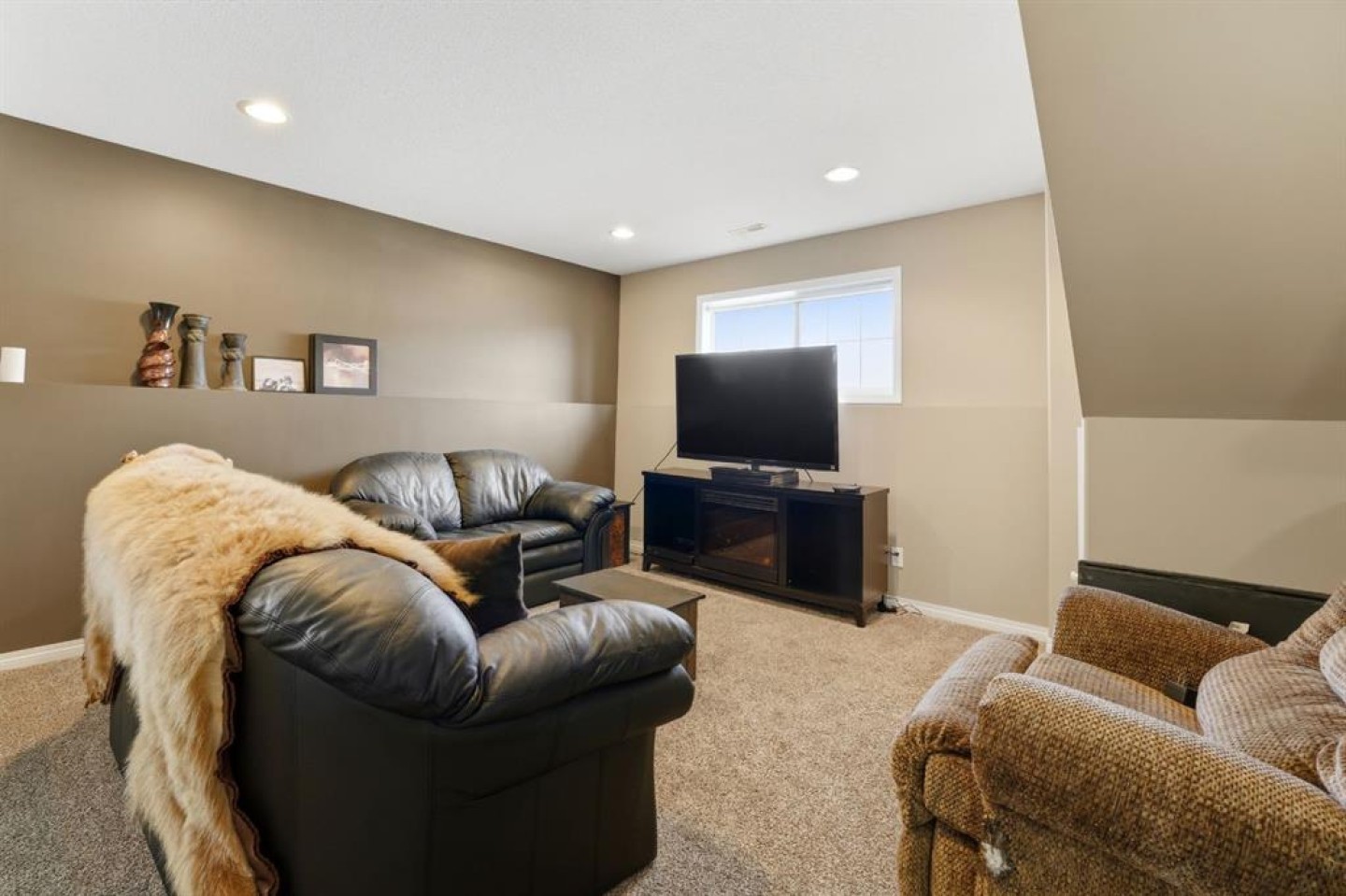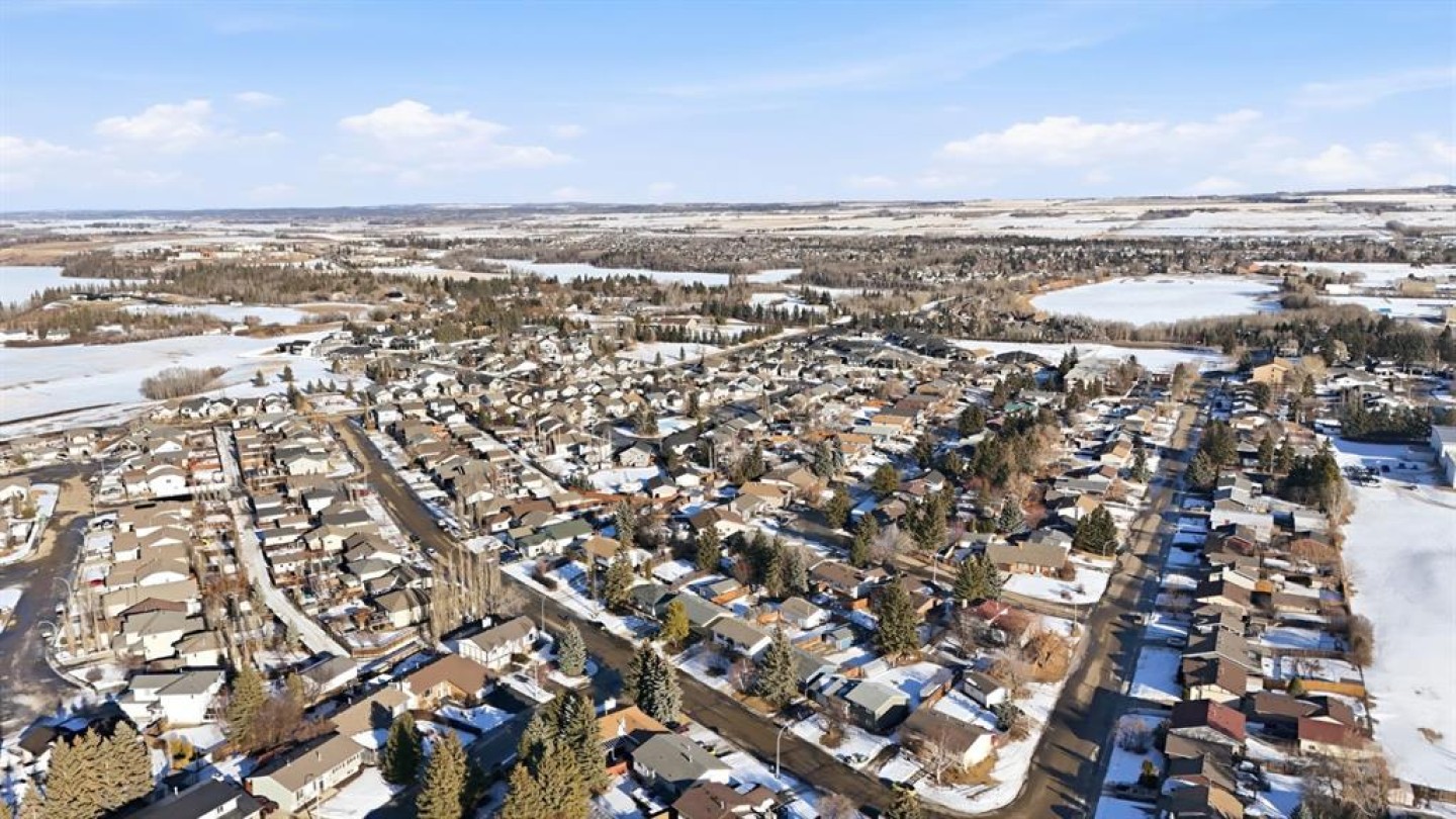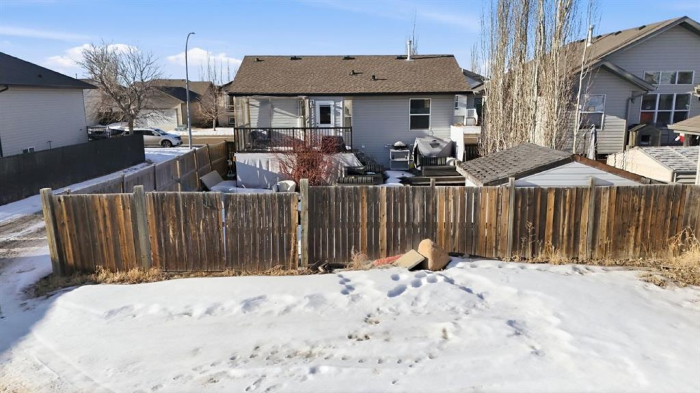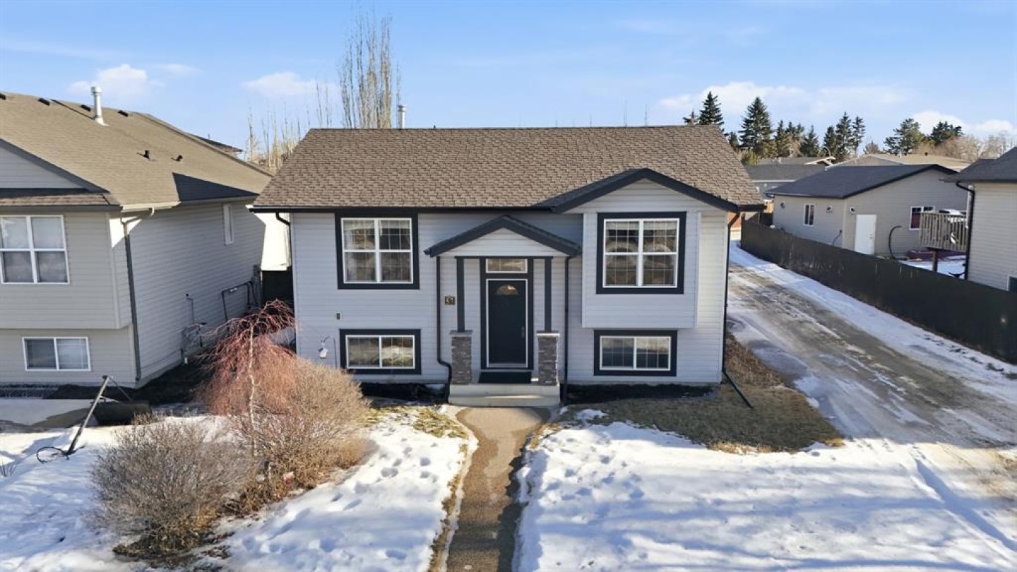 Welcome to 57 Garden Road, a clean, well-kept bi-level located in Lacombe’s Willow Ridge. This fully developed home offers strong value in a quiet, family-friendly neighbourhood. The main floor is bright and open, with vaulted ceilings and large windows that fill the space with natural light. The layout includes a dedicated dining area framed by bay-style windows and a well-planned kitchen with ample cabinetry and a raised eating bar. Two bedrooms and a full four-piece bathroom complete the upper level. The finished basement features a large family room, an oversized third bedroom, a second full bathroom, a separate laundry area, and additional storage. The layout also allows for the easy addition of a fourth bedroom, if needed. Outside, the yard is fully fenced and landscaped, with a two-tiered deck and a rear parking pad. Swing gates are already in place, providing convenient access for RV parking or future garage development. This is a well-maintained home with a practical layout and long-term potential.