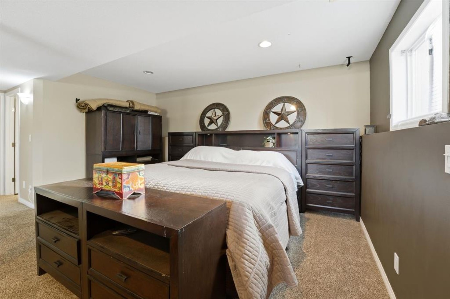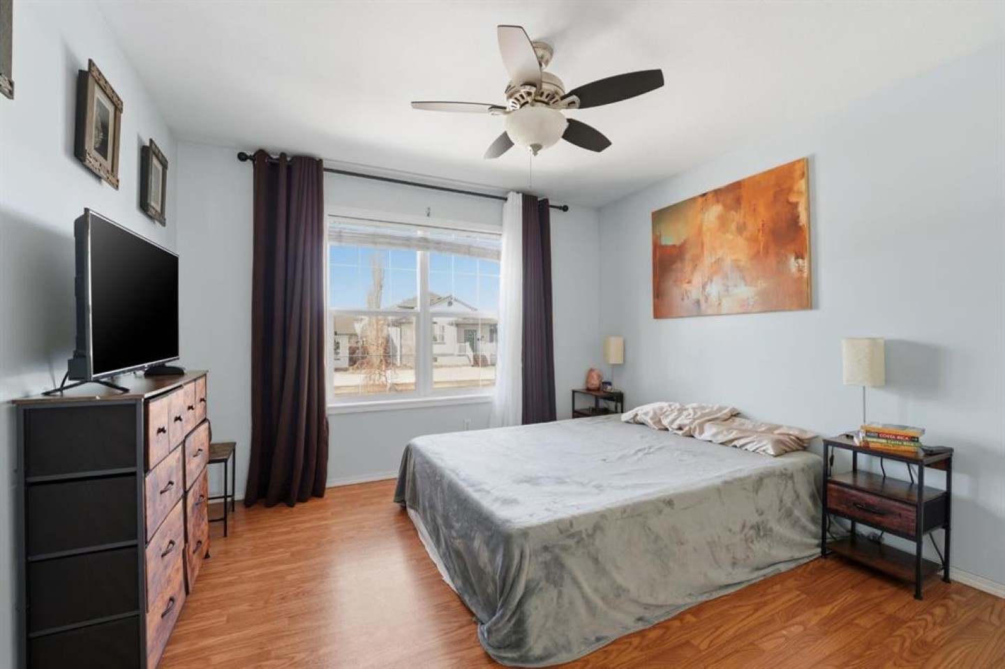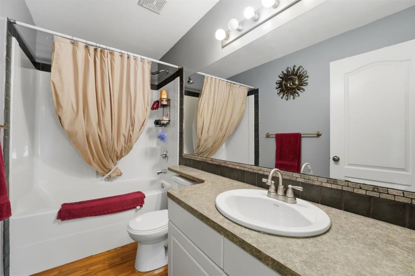 Welcome to 57 Garden Road, a clean, well-kept bi-level located in Lacombe’s Willow Ridge. This fully developed home offers strong value in a quiet, family-friendly neighbourhood. The main floor is bright and open, with vaulted ceilings and large windows that fill the space with natural light. The layout includes a dedicated dining area framed by bay-style windows and a well-planned kitchen with ample cabinetry and a raised eating bar. Two bedrooms and a full four-piece bathroom complete the upper level. The finished basement features a large family room, an oversized third bedroom, a second full bathroom, a separate laundry area, and additional storage. The layout also allows for the easy addition of a fourth bedroom, if needed. Outside, the yard is fully fenced and landscaped, with a two-tiered deck and a rear parking pad. Swing gates are already in place, providing convenient access for RV parking or future garage development. This is a well-maintained home with a practical layout and long-term potential.