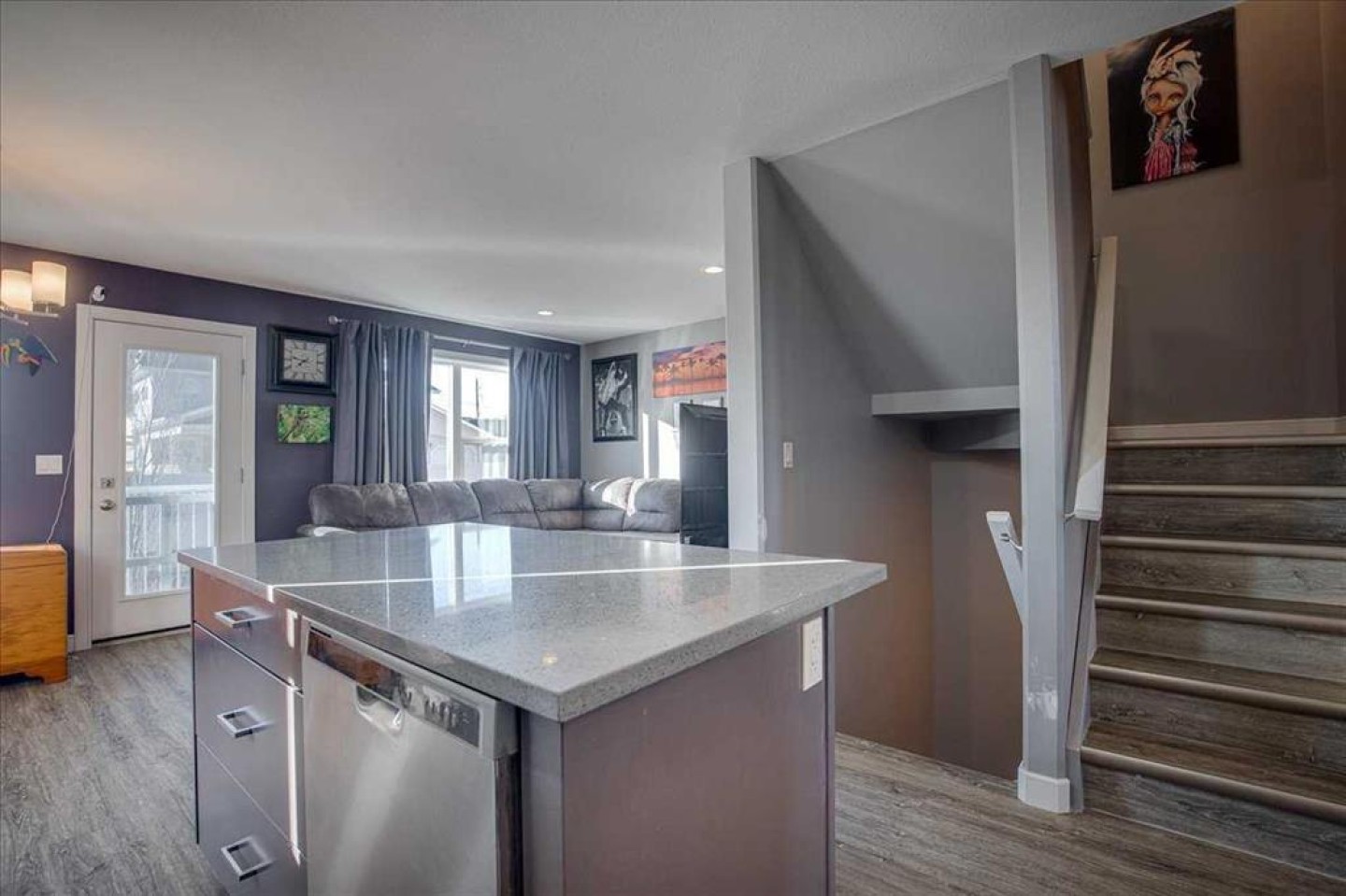 Location, Location, Location! End Unit with windows on three sides allows for lots of natural light. Enjoy being just steps from Henner’s Pond and only a short five-minute walk to Burman University, making this an ideal home for families, students, or investors alike. Open Concept main floor. Spacious kitchen with abundant cabinetry and sleek quartz countertops, plus a separate dining room perfect for entertaining. Main floor office and two piece bathroom. Upstairs you will find three bedrooms and two full bathrooms. The primary bedroom features his and hers closets, shoe closet and ensuite with dimmable pot lights - a thoughtful touch for comfort and ambiance! The unfinished basement provides room to grow, with potential for a family room, additional bathroom and laundry/utility area. West facing deck. Beautifully maintained shared community space with an added fire pit. Conveniently located with two assigned parking stalls right out front and plenty of street parking for guests. This home combines style, space, and location—perfect for families, professionals or anyone seeking a vibrant Lacombe lifestyle! Act quick this one won't last long!
