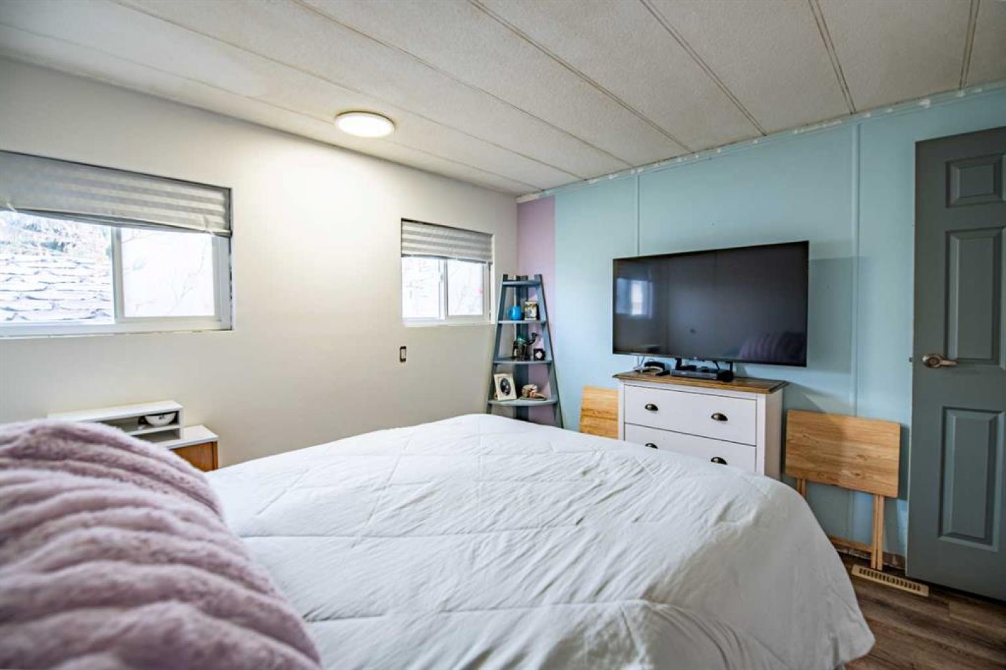 Welcome to this charming 3 bed and 1.5 bathroom mobile in Mustang Acres. This well cared for home is filled with natural light and showcases pride of ownership. Tons of updates over recent years include including furnace, brand new hot water tank, electrical updates, plumbing upgrades in 2021 and more. You are welcomed into the space by a cozy living room which is open to the functional kitchen which has seen many renovations. Three bedrooms makes this home desirable as well as the addition of a 2pc bathroom in 2021 as well as the updated 4pc bathroom in 2021. The backyard is fenced and pets are allowed with approval. Lot rent is $910/month and includes water & garbage. This home requires finishing touches but offers a move-in ready space with majority of the big ticket items taken care of for you!