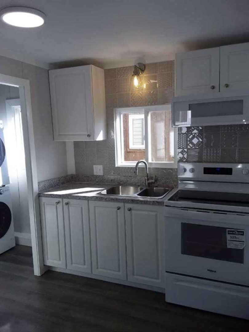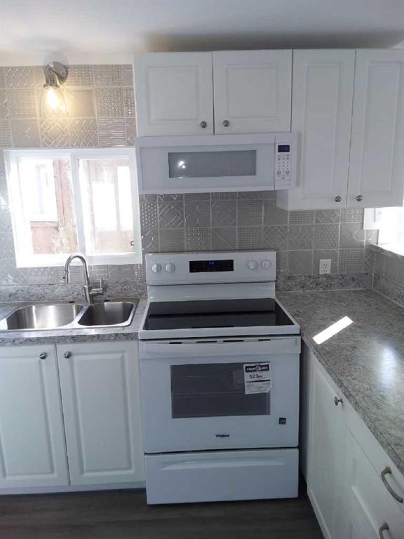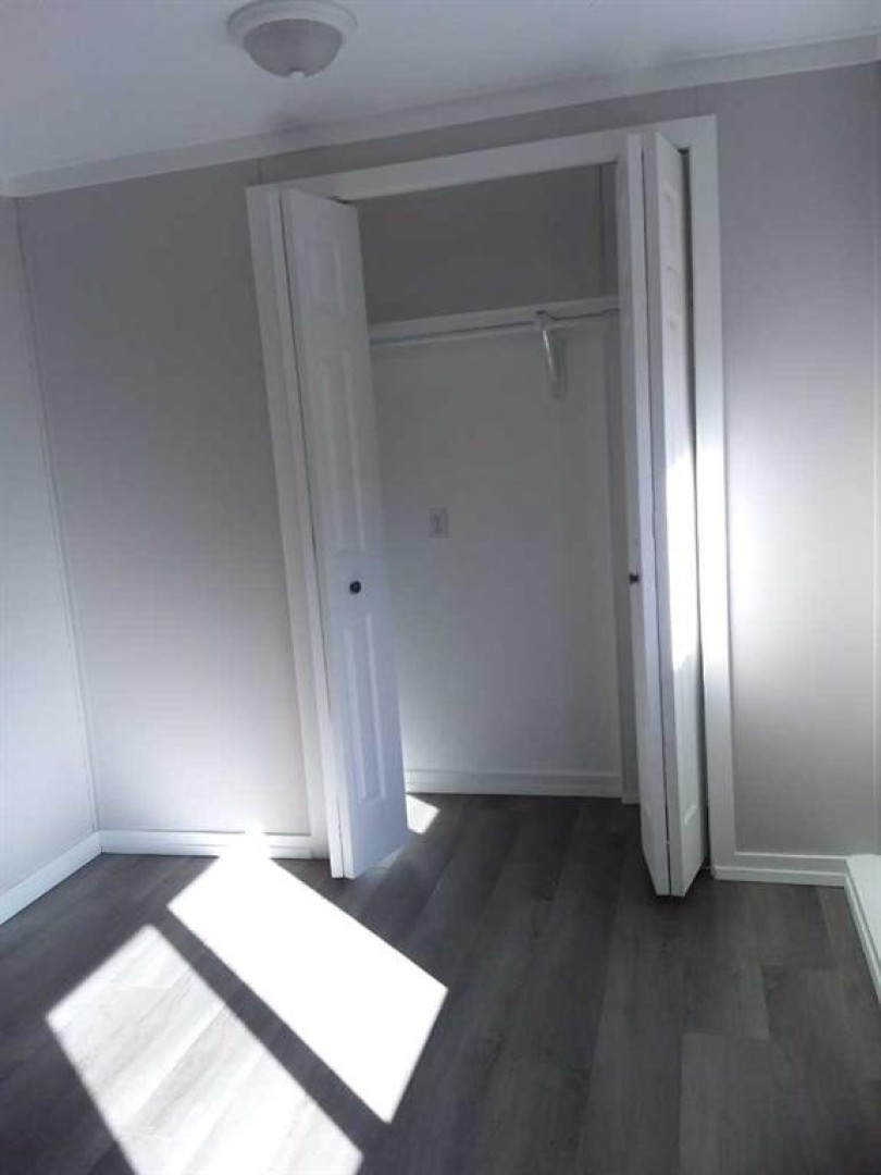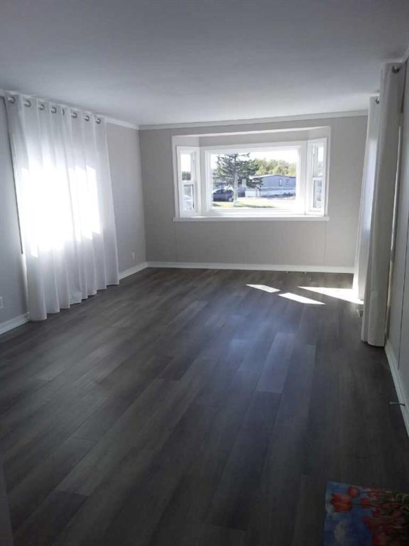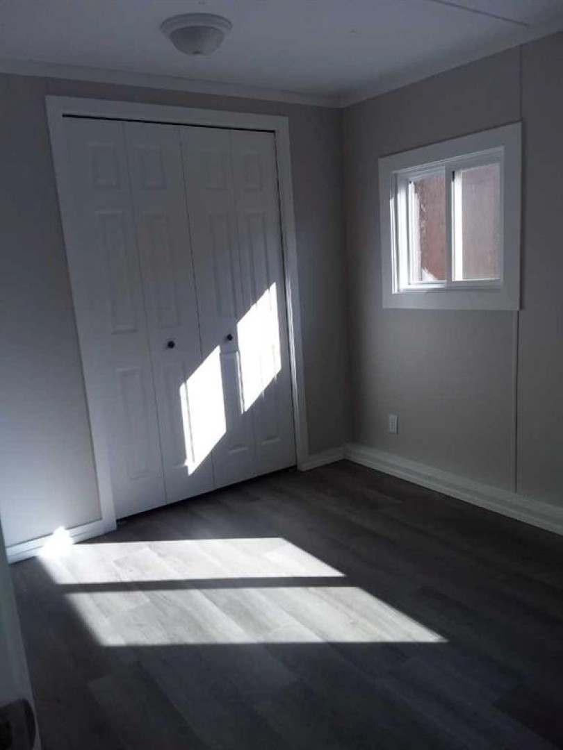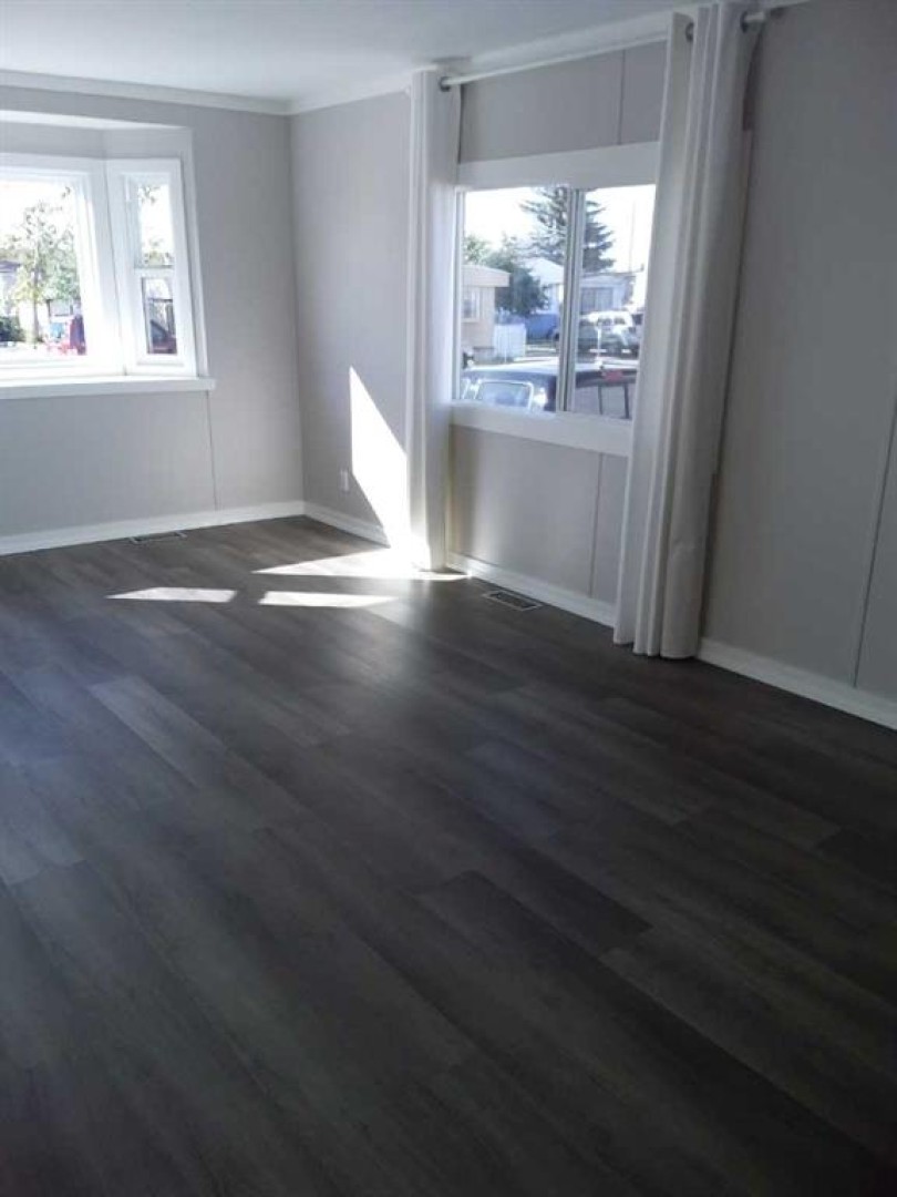 Affordable living at its best! Vendor financing available. Exact terms to be discussed. You will enjoy living in your own space with no shared walls. Relax in your private yard, create a garden and bbq on your own patio. This 2 bedroom, 1 bath beauty has been refurbished with stylish vinyl plank flooring throughout and completely repainted. The bright kitchen has modern white cabinets, a huge peninsula and a stylish, modern backsplash. The home includes all new appliances, (with warranties) including a stacked washer / dryer set and microwave / hood fan with direct ventilation. The bedrooms are a good size, with double closets in each. New light fixtures throughout, including LED lights and bulbs. Kitchen and bath fixtures are new and upgraded. Every inch of this home is clean and fresh! The exterior has been clad in maintenance free vinyl siding plus a aluminum soffits. Double paned vinyl windows with new drapes add to the comfort. This home is on a large, level lot that is partially fenced and includes a garden shed on a new base. The parking pad in front has space for 2 vehicles. Immediate occupancy. Listing agent is the current owner.